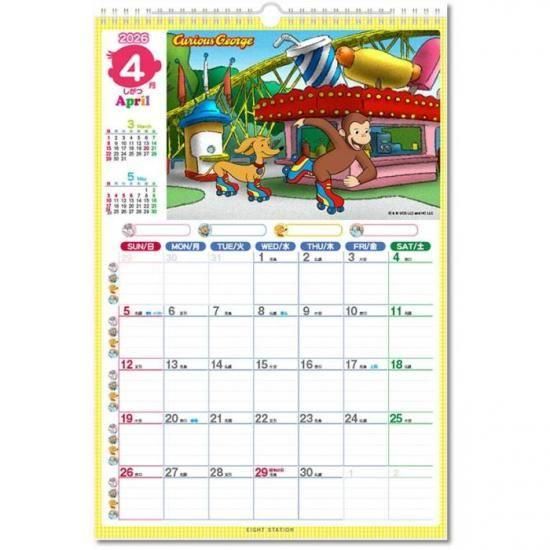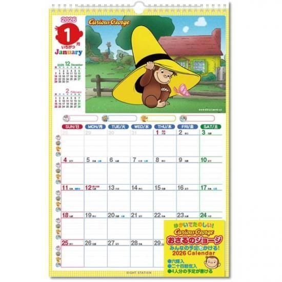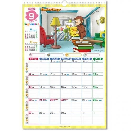 2026年カレンダー アニメ おさるのジョージ スケジュールカレンダー 壁掛け 2025年9月20日発売