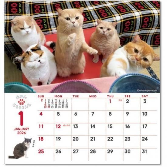 2026年カレンダー 動物 卓上 ねこと生活 みかんとじろうさんち 壁掛け 2025年9月20日発売