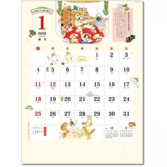 2026年カレンダー アート 歳時記カレンダー しばわんこと和の暮らし 壁掛け 2025年9月20日発売