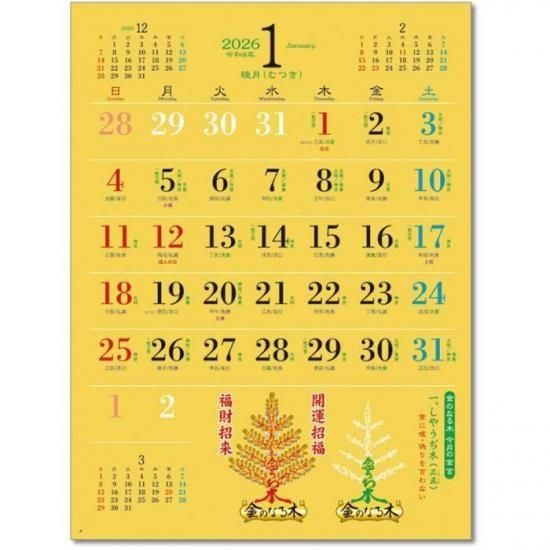 2026年カレンダー 教養・実用・他 金のなる木 日々是吉日暦 壁掛け 2025年9月20日発売
