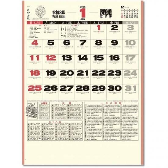 2026年カレンダー 教養・実用・他 開運ごよみ 壁掛け 2025年9月20日発売