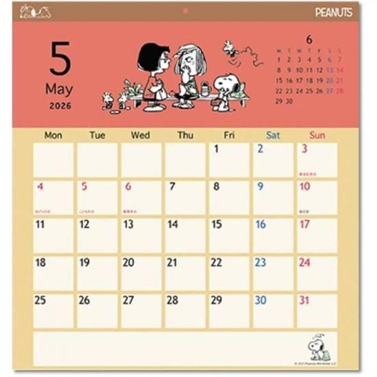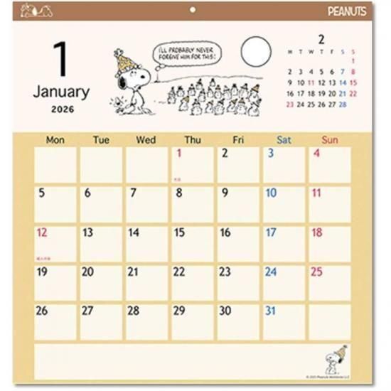 2026年カレンダー アニメ スヌーピー スクエア 壁掛け 2025年9月20日発売