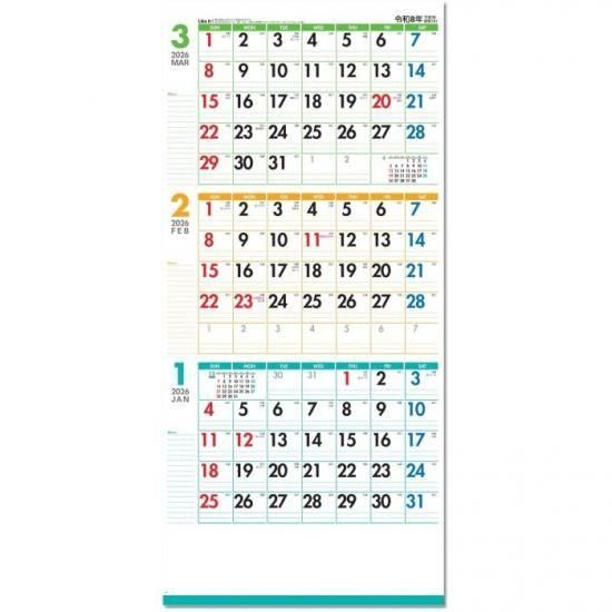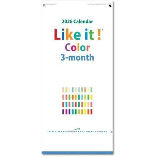 3ヶ月Likeit!Color3month(ミシン目入) カレンダー 2026 壁掛け シンプル