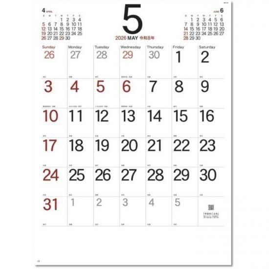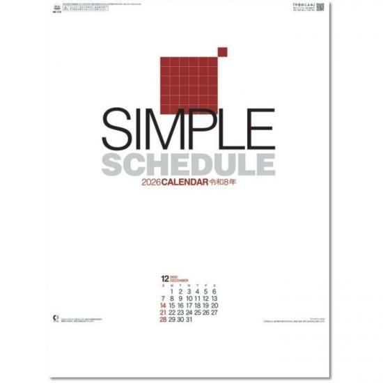 シンプルスケジュール(小) カレンダー 2026 壁掛け シンプル