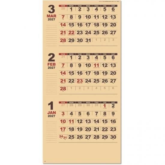 カレンダー 2026 壁掛け POSTYクラフトメモ(3カ月)