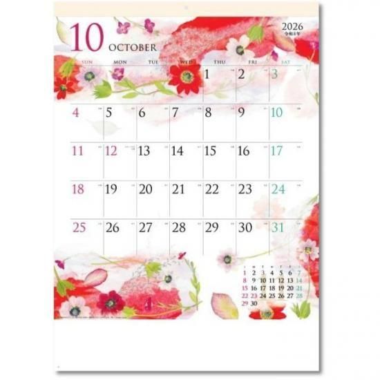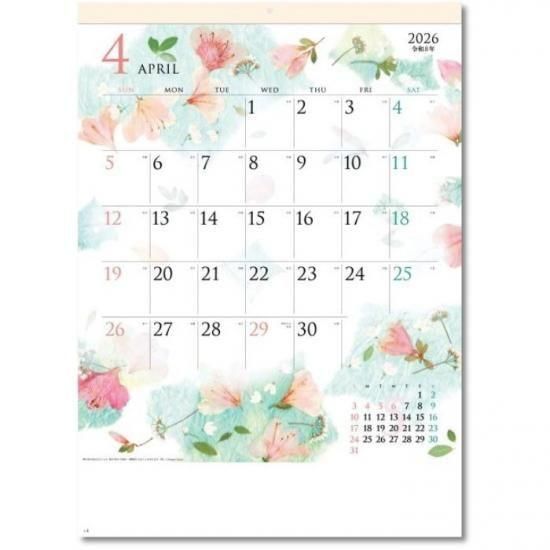 モダン押し花・和紙はり絵 カレンダー 2026 壁掛け 花