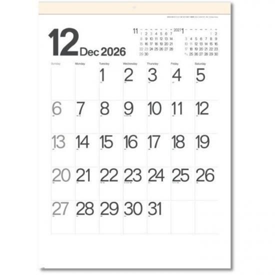 SG292 カレンダー 2026 壁掛け モノトーン文字B4