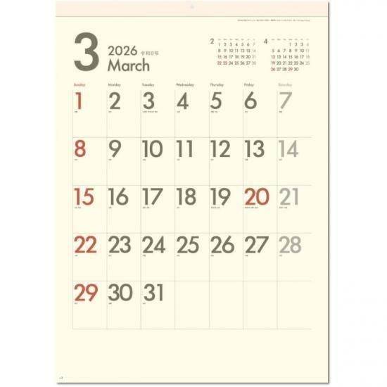 SG2920 カレンダー 2026 壁掛け DAYS(文字月表)