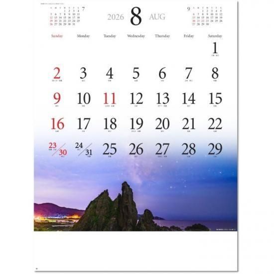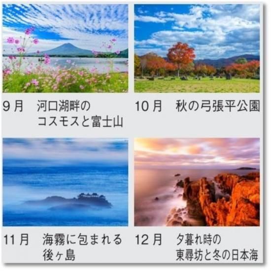 日本各地を旅する、車窓から見える景色をイメージしたカレンダーです。風景と数字がうまく溶け込み、数字が大きく、機能的で使いやすさも抜群です。