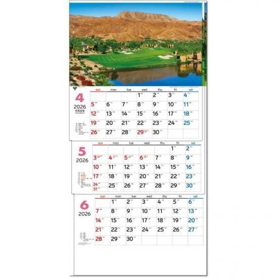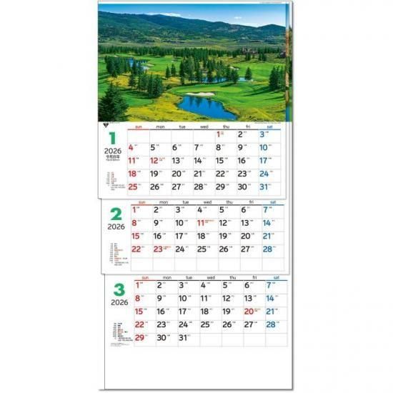 2026年壁掛けカレンダー 世界のゴルフ場3か月〜上から順タイプ〜