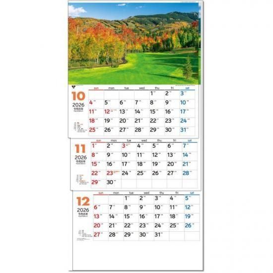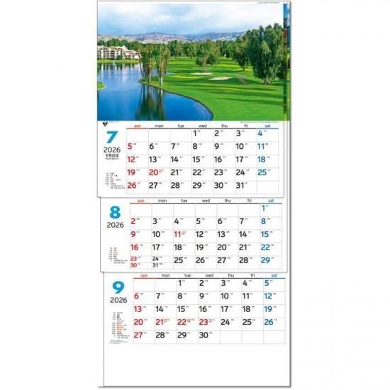 カレンダー2026 壁掛け 世界のゴルフ場3ヶ月〜上から順タイプ〜