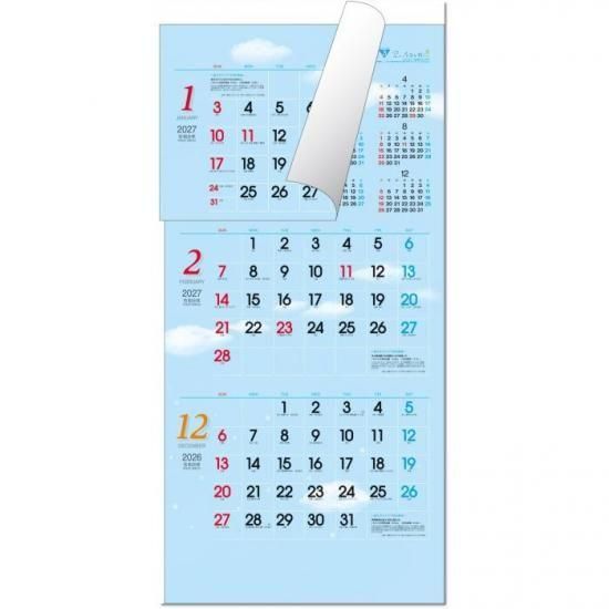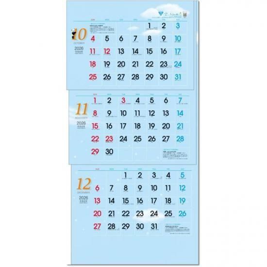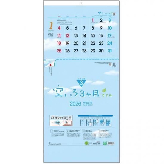 TD30789 カレンダー 2026 壁掛け 空いろ3ヶ月eco