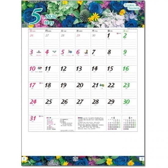 フローラル・シャワー カレンダー 2026 壁掛け 花