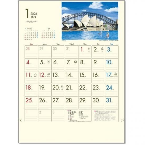 TD30867 カレンダー 2026 壁掛け 世界遺産への旅
