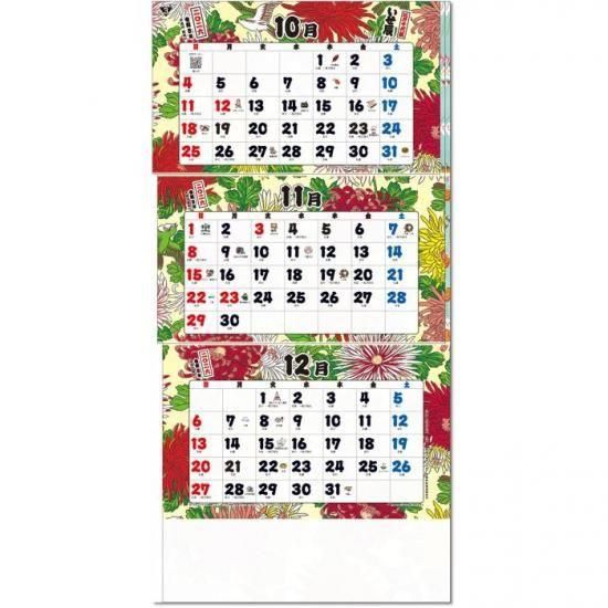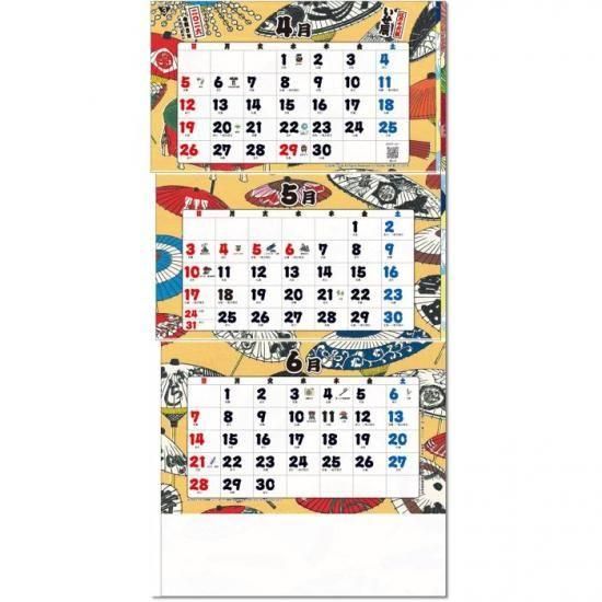 TD30982 カレンダー 2026 壁掛け 江戸千代紙3ヶ月文字S(15ヶ月)